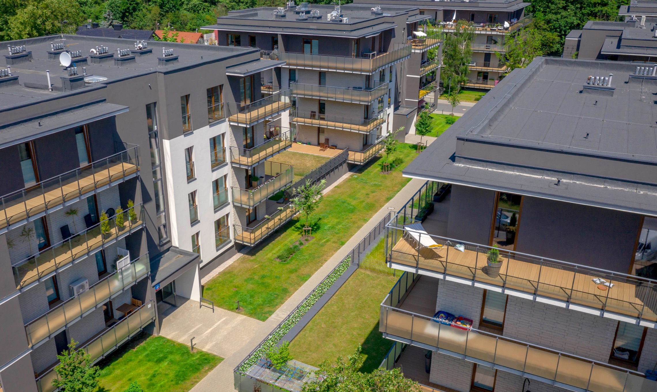 Osiedle oferuje szereg udogodnień dla mieszkańców: zielony dziedziniec z placem zabaw dla dzieci, garaże podziemne pod każdym z budynków, miejsca naziemne na terenie inwestycji, windy, komórki lokatorskie czy też system nawadniania zieleni wodą, czerpaną ze studni głębinowych. Przy wjeździe na zamknięty teren osiedla zaprojektowano pomieszczenie ochrony.